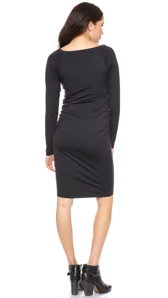 Ruched sides add delicate volume to this form-fitting Rosie Pope maternity dress. Long raglan sleeves. Unlined.
