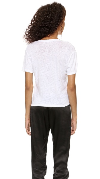 Slubbed jersey brings an airy feel to this MONROW tee. Banded scoop neckline. Cap sleeves. Semi-sheer.