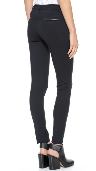 Ponte ankle-length Vince pants have a flattering fit and versatile style. Soft leather trims the zip front and welt back pockets. Hook-and-eye closure and zip fly.