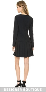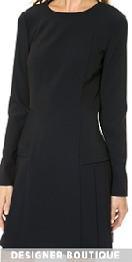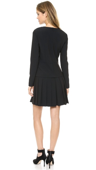 A sharp-seamed DKNY dress has professional appeal composed in lightweight suiting. Knife pleats lend movement to the skirt and tailored long sleeves add a classic finish. Hidden back zip. Unlined.