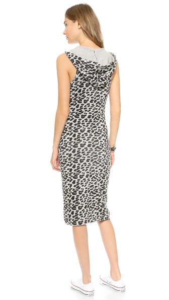 Brushstroke leopard print brings graphic appeal to this One Teaspoon dress. Ribbed edges and an attached hood add a casual element. Sleeveless. Unlined.