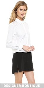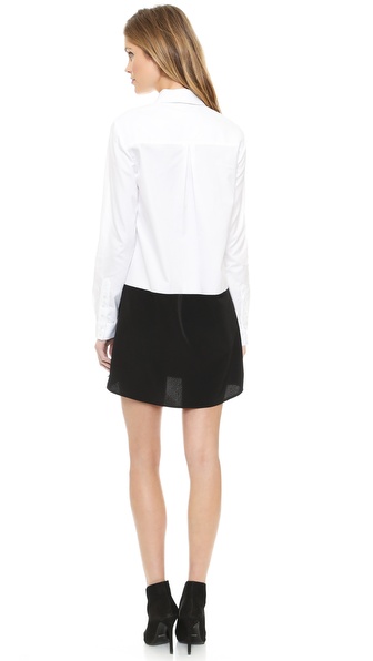This colorblocked Chalk shirtdress gains sophisticated structure with a concealed button placket and a sharp fold-over collar. 5-button cuffs. Split hem. Unlined.