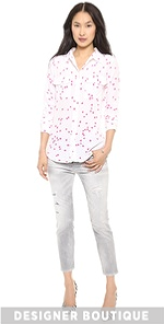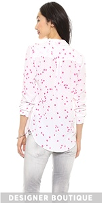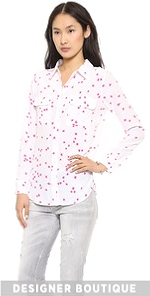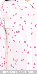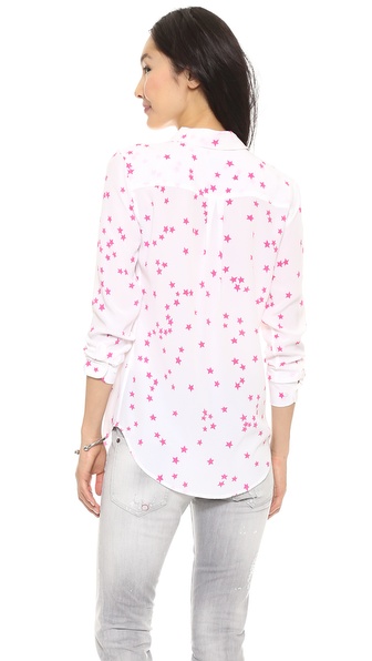 A signature Equipment blouse gets a whimsical update in a scattered star print. A fold-over collar and buttoned placket keep the look smart and classic. 2 flap pockets. Shirttail hem. Buttoned cuffs and long sleeves.