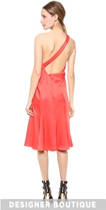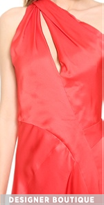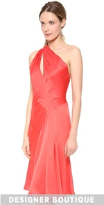 A slim cutout details the bodice of a satin J. Mendel dress styled in a sexy single-shoulder silhouette. Flexible boning offers flattering structure and the paneled skirt flares for fluid drape. Hidden back zip. Lined.