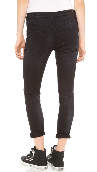 Heavy fading and whiskering lend a vintage feel to these ultra-cool slouchy-skinny R13 jeans. 5-pocket styling. Button closure and zip fly.