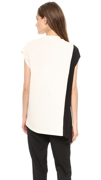 A draped silk side panel elevates a casual jersey 3.1 Phillip Lim tee. The slouchy silhouette is styled with a ribbed crew neckline and short dolman sleeves.