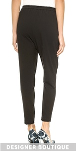 These Rodebjer pants have a loose silhouette with two deep front pleats offering a draped tapered profile. Slant front pockets. Elastic waist. Lined.