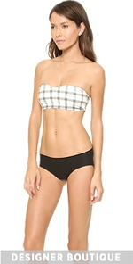 A sweetheart neckline and checkered print give this strapless bra a girly feel. Puckered stitching adds a touch of texture and elastic details the back cutout. Jersey lining.