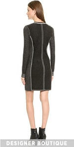 Structured side panels and a striped banded V neckline lend a sporty look to a figure-conforming Rag& Bone dress. Long sleeves.