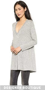 An oversized Riller & Fount tunic with a plunging V neckline. Contrast threading adds visual appeal. Ribbed edges and long sleeves. Unlined.