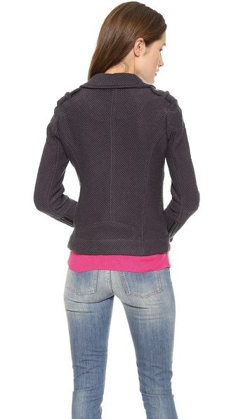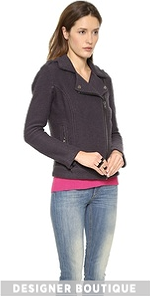 Tactile knit softens the feel of a classic BB Dakota moto jacket. An exposed zip secures the off-center placket and cuffs and covered zips close the hip pockets. Unlined.