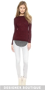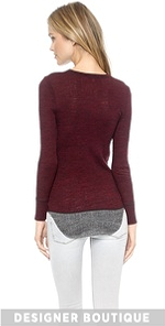 Subtle glen plaid details a delicate fine-knit IRO top. An asymmetrical contrast panel adds a hit of drama to the hem. Crew neckline and fitted cuffs. Long sleeves.